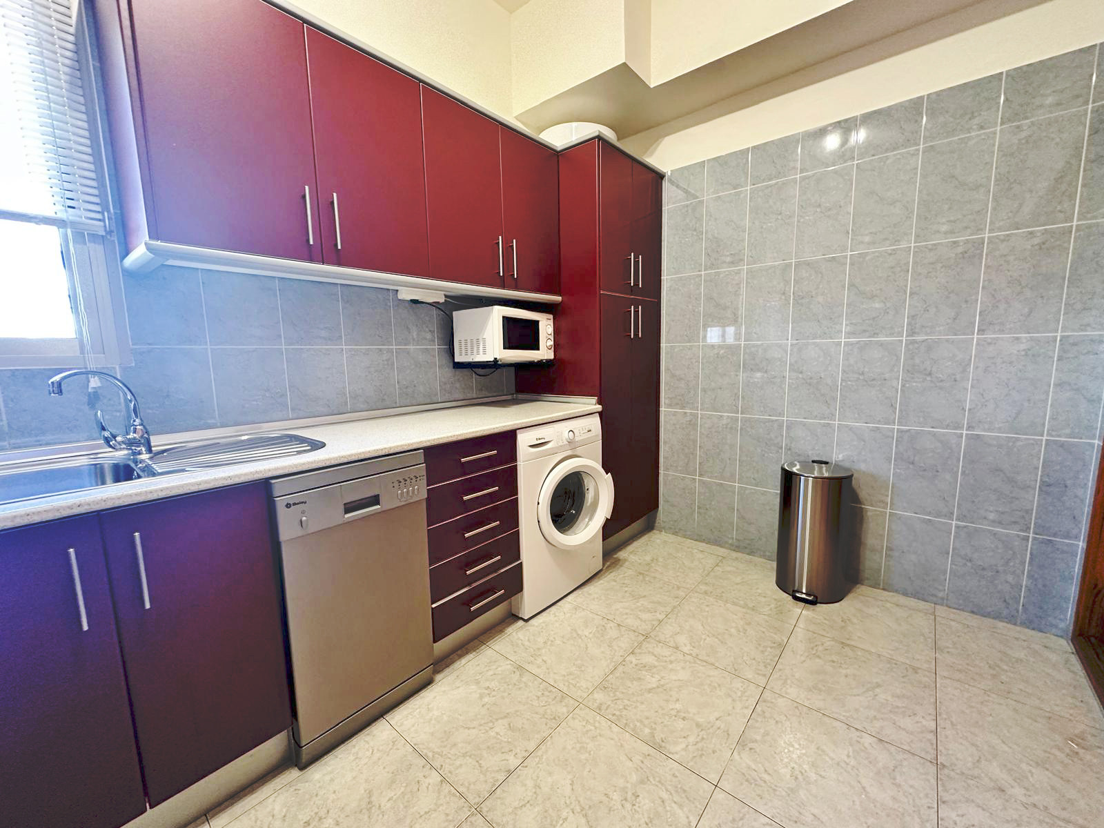 El apartamento cuenta con 200 m² distribuidos en tres dormitorios dobles con vistas al mar, dos de ellos con acceso a la terraza, un dormitorio individual, dos baños con ducha, un gran salón comedor con acceso a la terraza y una cocina totalmente equipada.